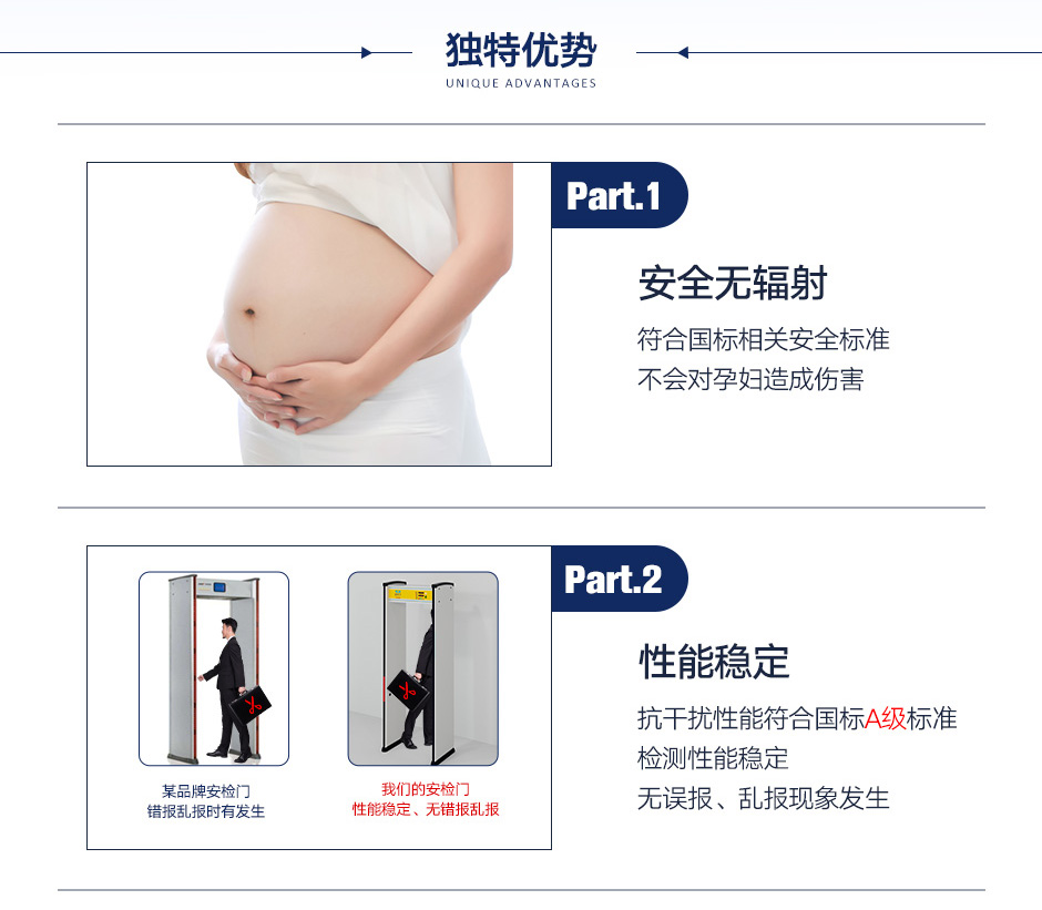 [防震設(shè)計]:站在安檢門的中間,用手拍兩側(cè)門板,安檢門不會誤報。